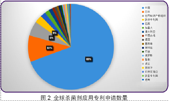 全球杀菌剂应用相关的专利申请国家中,中国就占了69%的申请,而中国的农药产量也是占到全球的70%左右。第二名的日本占到全球总申请量的10%左右,这和日本的农药产品原研能力高度相关。