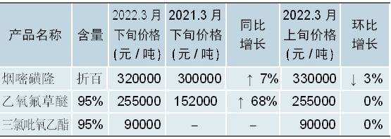 除草剂方面草铵膦原药价格下调趋势过猛,草甘膦原药受此影响,价格也下调较多,其余产品部分呈小幅度价格起伏;杀虫剂方面除甲氧虫酰肼原药价格上调,其余产品部分呈下滑态势;杀菌剂方面嘧菌酯上调较多,其余产品部分有小幅度价格波动,除个别产品保持平稳态势。3月下旬的原药价格相比上旬,波动较多,价格保持平稳态势的产品不多。