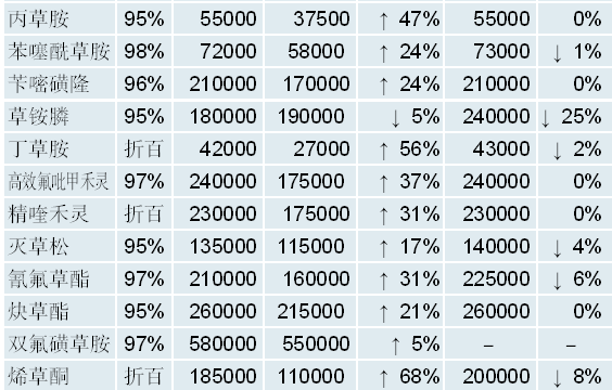 草铵膦率一众除草剂价格集体跳水 丙硫菌唑等产品价格稳中有升