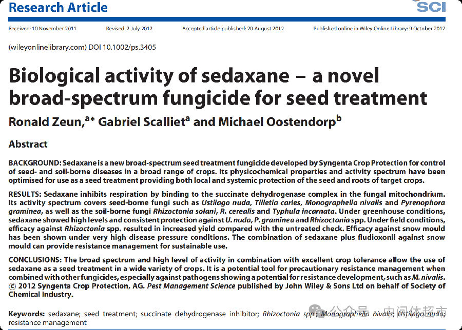 以下内容基于2012年发表于《Pest Management Science》的研究论文《Biological activity of sedaxane - a novel broad-spectrum fungicide for seed treatment》编译整理,系统介绍这一重要农药的发现、机理与效能。