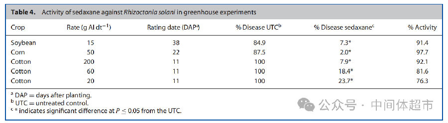 立枯丝核菌:在大豆、玉米和棉花的温室试验中,氟唑环菌胺表现出优异且一致的防效。例如,在玉米上,按50克/100公斤种子的剂量处理,对立枯丝核菌的防效高达97.7%。