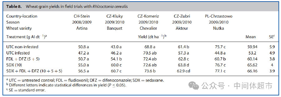 禾谷丝核菌:在人工接种禾谷丝核菌的冬小麦田间试验中,所有含氟唑环菌胺的处理(单剂或复配)都带来了显著的增产效果,产量甚至超过了未接种的对照小区,表明其不仅能防治病害,还能促进作物健康生长,实现作物健康收益。