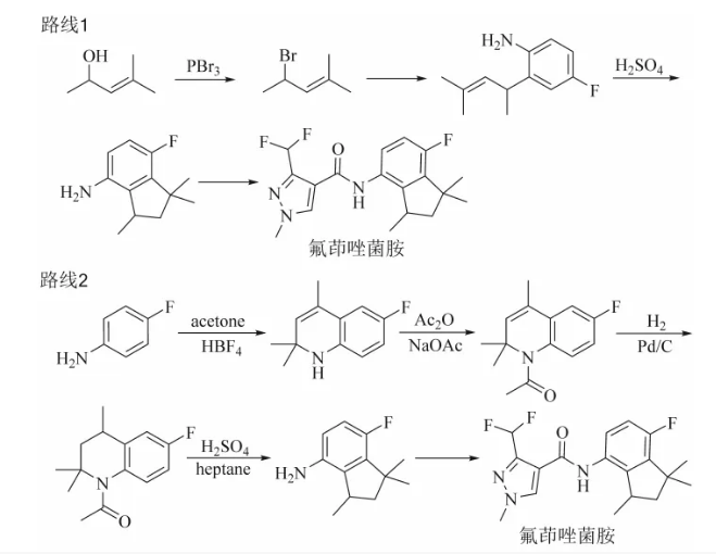 图2 专利报道的氟茚唑菌胺合成路线