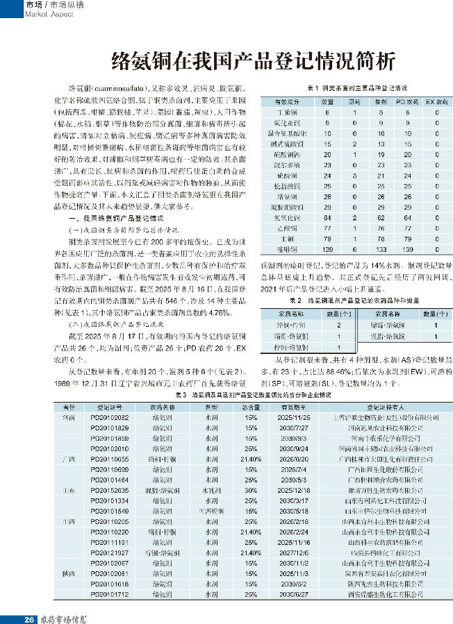 此文更详情内容及更多信息请点击以下链接及"农要会"小程序阅览!络氨铜在我国产品登记情况简析