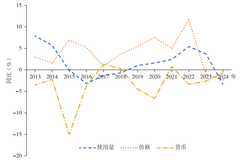 图2 2013—2024年需求量、价格及货币等因素对全球植保销售额的影响(%)