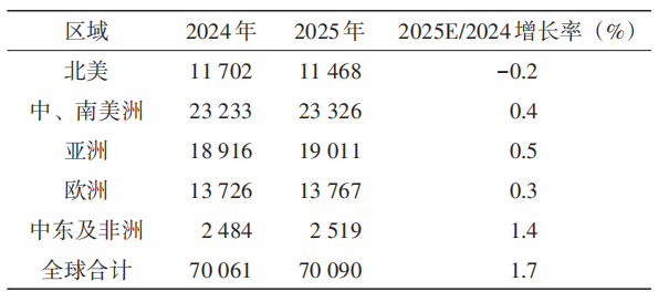 尽管在2024年,作物保护市场因不利天气、高库存、货币动荡,销售急剧下降,但笔者预计2025年除北美外全球农药市场需求将获得一定幅度恢复性增长(表1)。