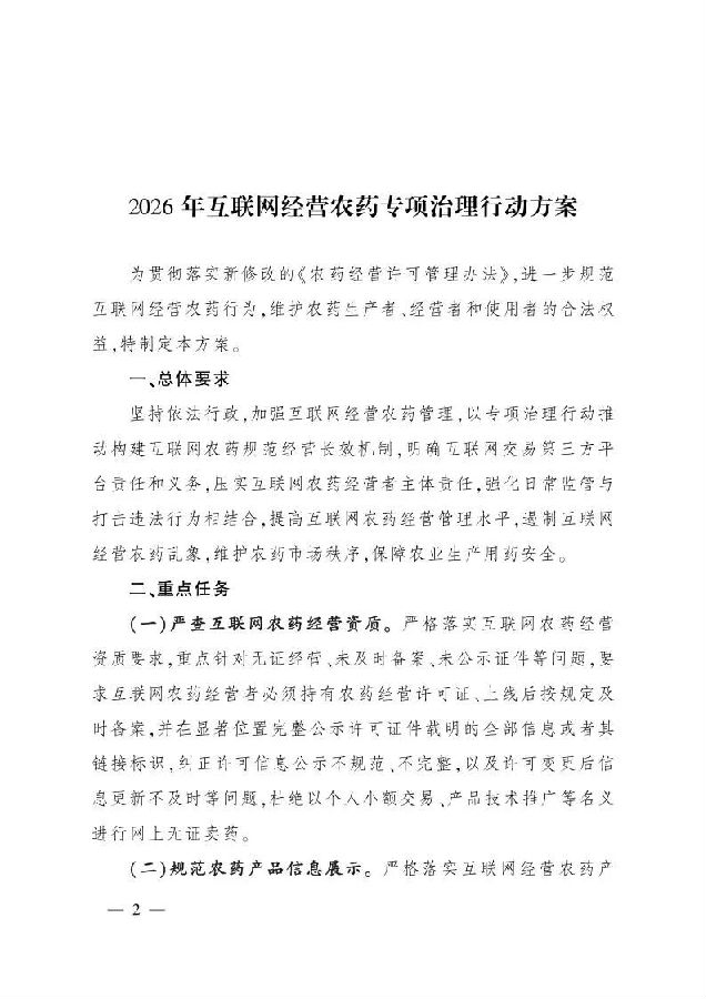 附件:《2026年互联网经营农药专项治理行动方案》